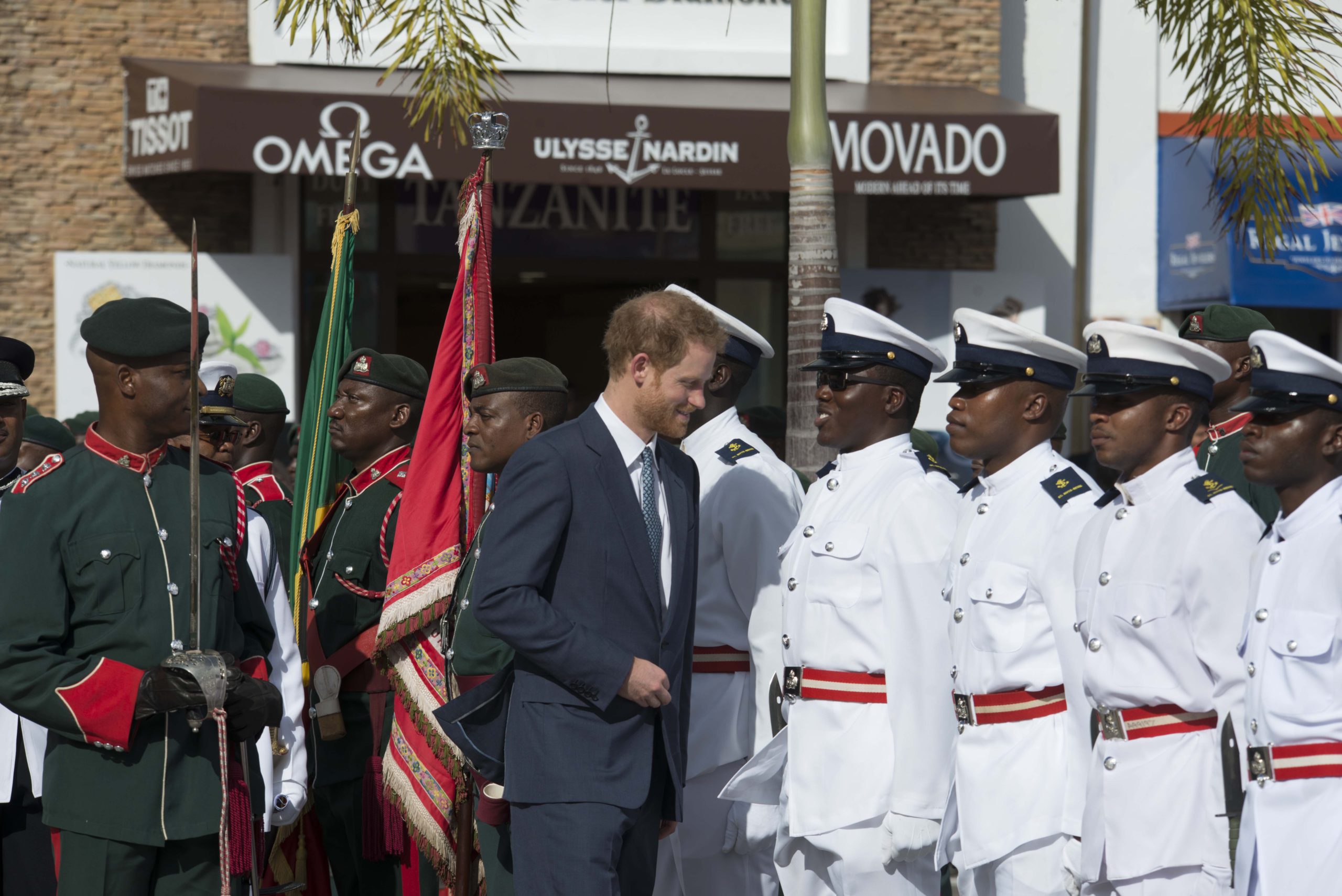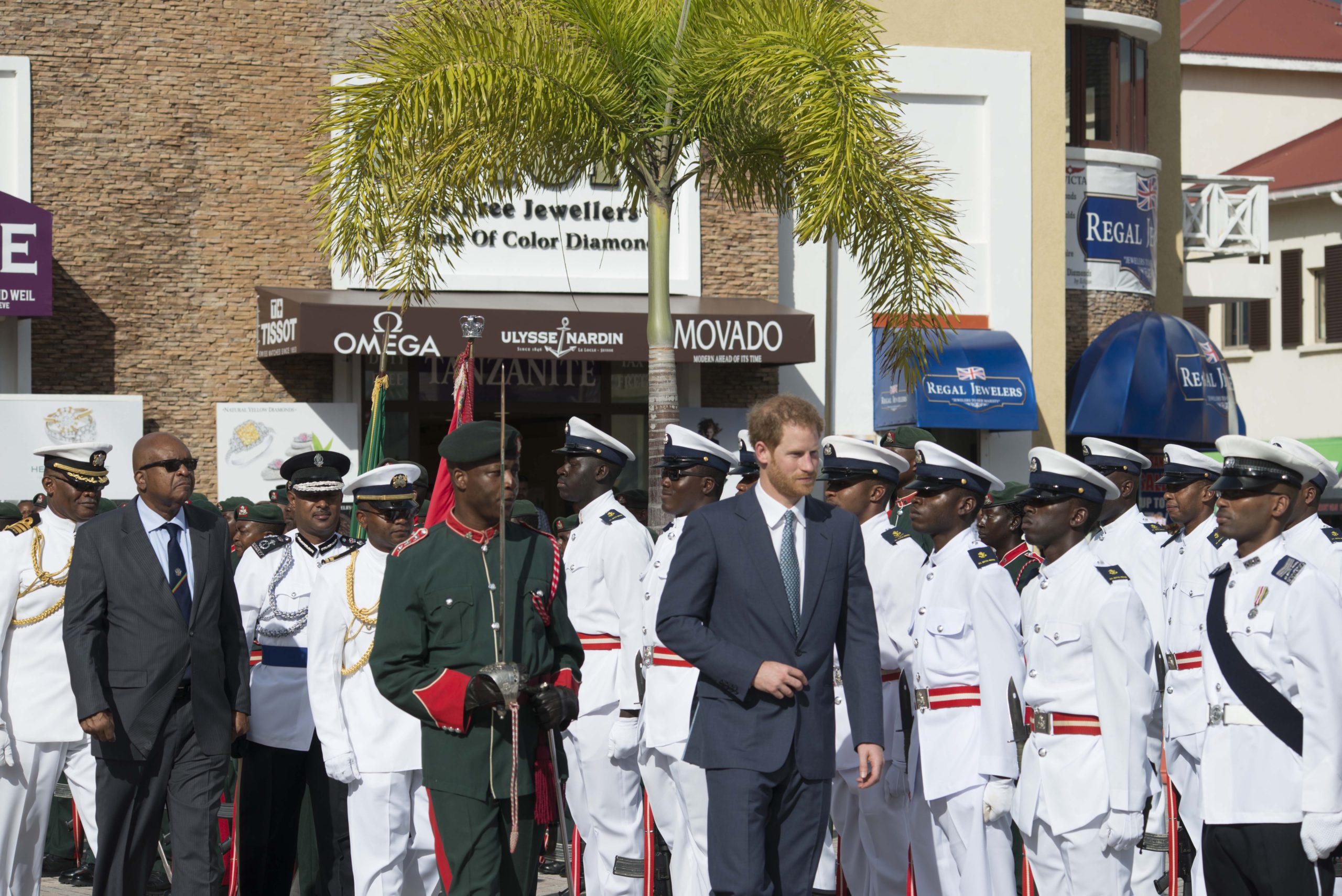 At Port Zante, Prince Harry smiled graciously as his arrival at the cruise pier was met with cheers and applause of several spectators who had gathered. Accompanied by St. Kitts and Nevis’ Governor General, His Excellency Sir S. W. Tapley Seaton, Prince Harry stood at the Saluting Dias to be given a royal salute by representatives of the Royal St. Christopher and Nevis Police Force and the St. Kitts-Nevis Defence Force and its Coast Guard Unit that made up a Guard of Honour.