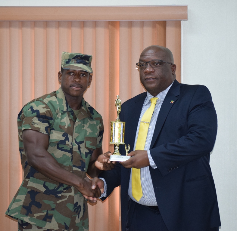 She also received an award for best at physical female. Special awards were also given to two other outstanding officers, namely, Police Constable Peter Jeremiah of the Royal Grenada Police Force for being the best at physical in males and to Police Constable Kerwin Thomas of the St. Christopher and Nevis Police Force for being the best at map reading.