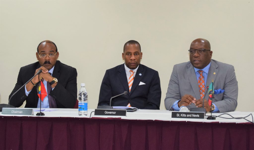 “We said we see an increase in primary surpluses across the Currency Union, so that’s positive. That does not mean that our countries do not have challenges because the evidence of finance will tell you that there are collective revenues but there are also more demands and you still have to juggle and you still have to manage tight budgets,” said Governor Antoine, who was flanked by Antigua and Barbuda’s Prime Minister, Minister of Finance and Chairman of the Monetary Council, Honourable Gaston Browne, and St. Kitts and Nevis’ Prime Minister and Minister of Finance, Dr. the Honourable Timothy Harris.