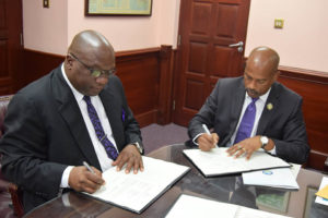 During a brief ceremony held at the Office of the Prime Minister at Government Headquarters on Friday, August 4, Prime Minister Dr. the Honourable Timothy Harris and Chief Executive Officer of the CARICOM Development Fund (CDF) Mr. Rodinald Soomer signed the agreement that will see funds totaling US$1.2 million pumped into the project.