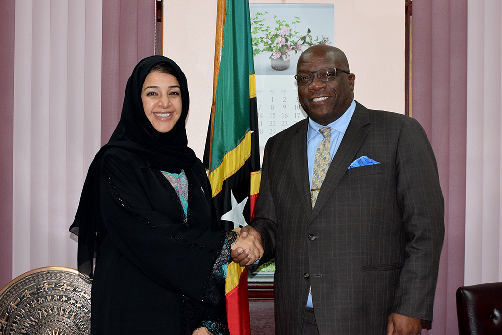 This was done when St. Kitts and Nevis’ Prime Minister, Dr. the Honourable Timothy Harris, met with a delegation from the UAE at his Government Headquarters office. The visiting delegation was led by Minister of State for International Cooperation, Her Excellency Reem Ebrahim Al Hashimy.