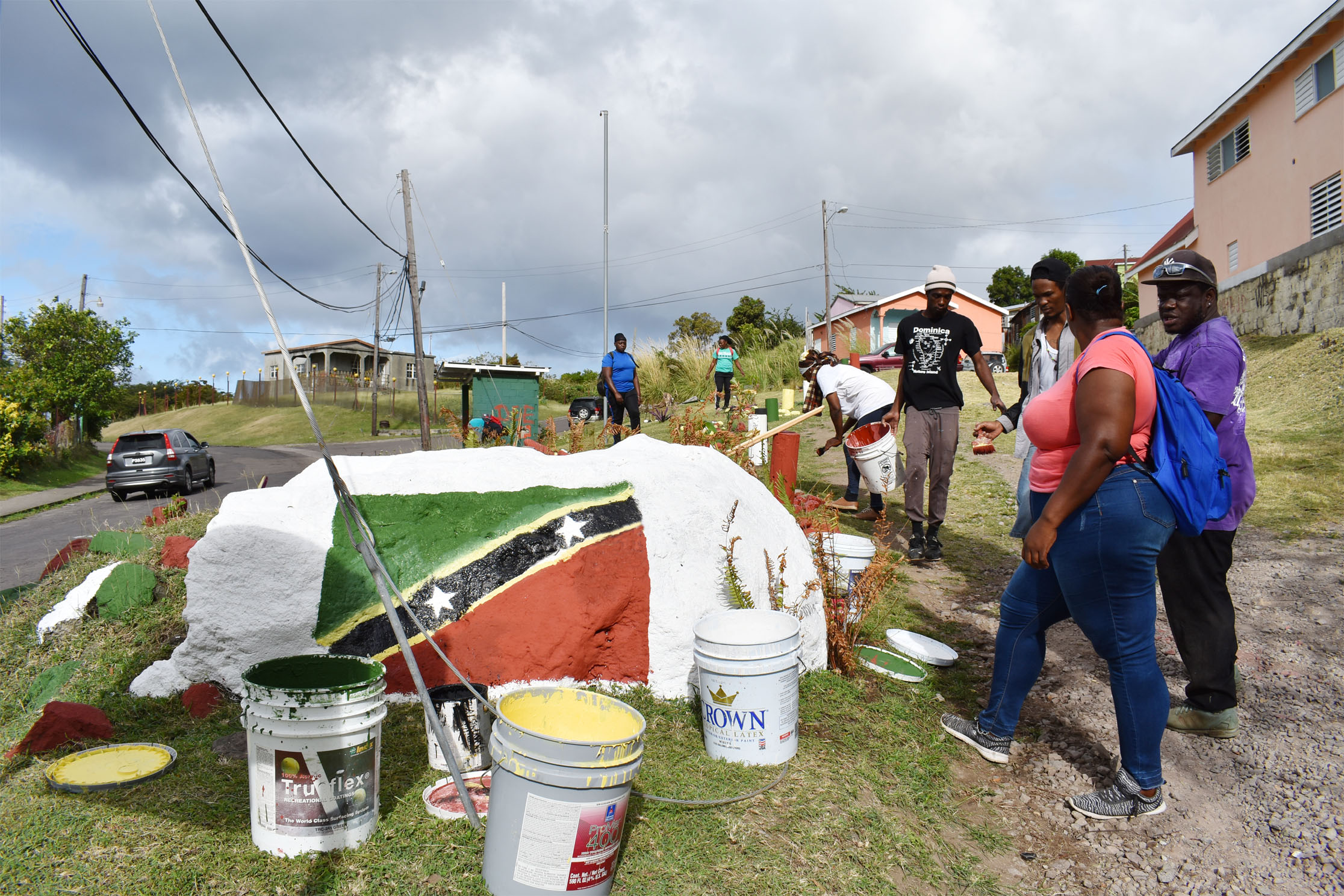 According to the Permanent Secretary, the community enhancement and beautification competition will be held among the different communities, including Stone Fort, Sandy Point, Cayon, Lodge, Conaree, Molineux, and Saddlers. The Challengers STEP Community Enhancement Group is the one working on the Stone Fort site, where colours of the National Flag have been used to decorate the surroundings.