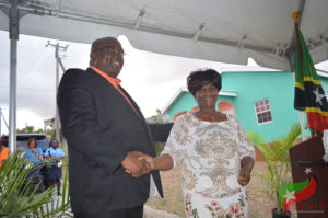 BASSETERRE, St. Kitts, April 25, 2019 (Press Unit in the Office of the Prime Minister) – A compassionate Team Unity Government, led by Prime Minister Dr. the Honourable Timothy Harris, acting on the reliable advice of the National Emergency Management Agency (NEMA), today, Thursday, April 25, presented the keys to a brand new furnished house to Ms. Euta Hodge of Molineux village.