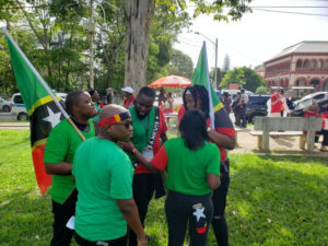 The St. Kitts and Nevis delegates danced, pranced, waved flags and sang, while being accompanied by various musical instruments such as drums, horns and fife, to the parade square.