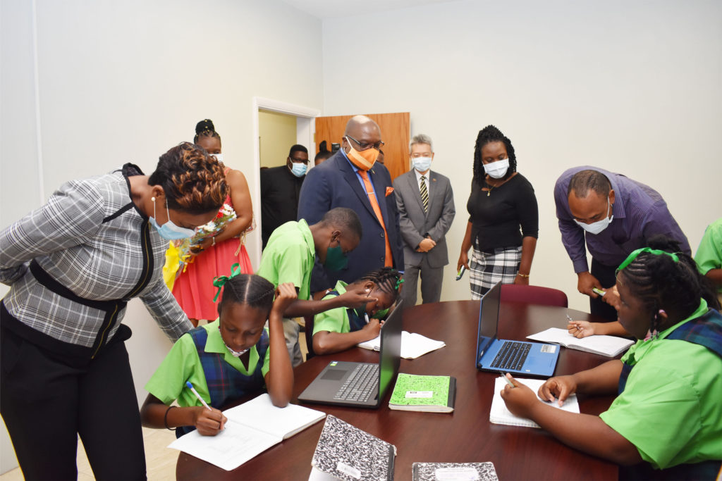 After the cutting of the ribbon Prime Minister Harris, Cabinet Ministers, Ambassador Tom Lee, and other dignitaries were taken on a tour of the facility by Director in the Department of Community Development and Social Services Mrs Osslyn Ward-Harris.