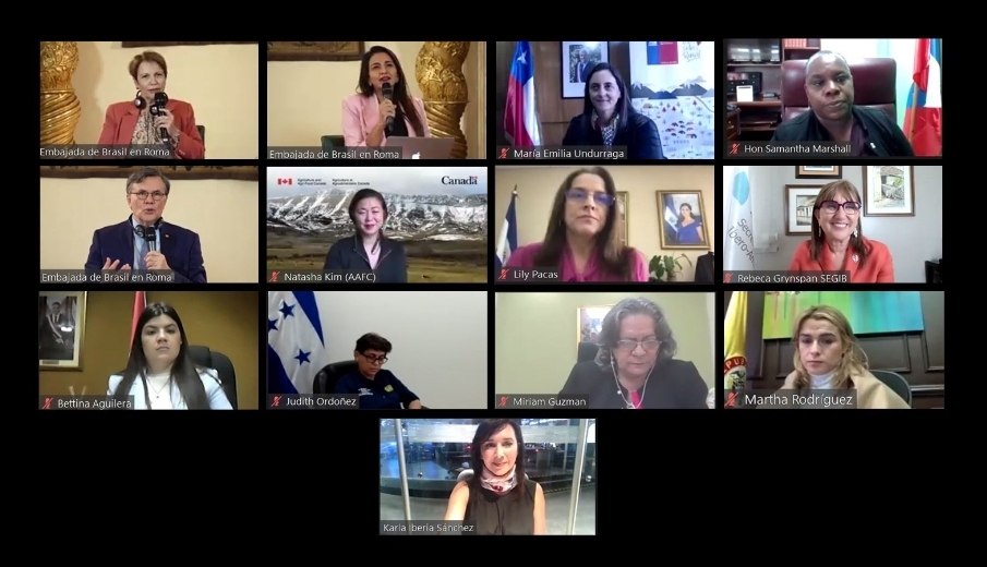 | Rome, 28 July 2021 (IICA). Within the framework of the UN Food Systems Pre-Summit inaugurated this Monday in Rome, the I Forum of Ministers and Vice Ministers of Agriculture of the Americas was formally established as an entity whose mission is to improve public policies and spotlight the role of women in rural development, favoring the full recognition of their rights. The inauguration, which was attended by the female ministers, secretaries and deputy ministers of 12 countries of the Americas, was a key step to institutionalizing a space to propose specific policies to promote the sustainable development of agrifood systems through recognizing the crucial contribution of the continent’s rural women to eradicating extreme poverty and hunger. The meeting at which the Forum was established was convened by the Inter-American Institute for Cooperation on Agriculture (IICA) and held at the Brazilian Embassy in Rome concurrent with the Food Systems Pre-Summit that runs through 28 July in the Italian capital. Participants included Samantha Marshall, Minister of Agriculture and Fisheries of Antigua and Barbuda; Tereza Cristina, Minister of Agriculture, Livestock and Food Supply of Brazil; María Emilia Undurraga, Minister of Agriculture of Chile; Tanlly Vera, Minister of Agriculture and Livestock of Ecuador; Jewel H. Bronaugh, Deputy Secretary of Agriculture of the United States; and Natasha Kim, Assistant Deputy Minister for Agriculture and Agri-Food of Canada. Also in attendance were Martha Lucía Rodríguez Lozano, Deputy Minister of Rural Development of Colombia; Lily Pacas, Deputy Minister of Agriculture and Livestock of El Salvador; Judith Ordóñez Deputy Secretary of Livestock of Honduras; Bettina Aguilera Paniagua, Deputy Minister of Agriculture of Paraguay; María Isabel Remy Simatovic, Deputy Minister of Policies and Supervision of Agrarian Development of Peru; and Miriam Guzmán, Deputy Minister of Rural Development of the Dominican Republic. Approximately 58 million women live in the rural areas of Latin America and the Caribbean and are responsible for 80% of all food production. However, their work is underreported and a mere 10% have access to credit and only 5% to technical assistance programs. The Forum’s presentation, whose first meeting was entitled “Women at the Forefront of Agri-food System Transformation”, was led by Manuel Otero, Director General of IICA, and Rebeca Grynspan, Ibero-American Secretary-General. The participating ministers and deputy ministers showed interest in the Forum becoming a space for dialogue and exchange to share experiences in managing access to credit, the availability of new technologies, land tenure and ownership and other issues from which the rural women of the Americas—who make a decisive contribution to regional and global food security—have been historically excluded. “We should be discussing public policies and exchanging information to help the rural women on our continent. We are currently undergoing deep transformations in our society and the role of women as change agents is more and more evident. Women’s empowerment is key to guaranteeing global food security”, stated Brazilian minister Tereza Cristina. Ecuadorian minister Tanlly Vera explained that poverty, food insecurity, unemployment and a lack of social protection are just some of the challenges facing rural women. “The time has come to recognize and spotlight the role we play in the field. We can contribute a lot to eradicating hunger and poverty and to reducing inequality”. For her part, Minister Marshall emphasized the disadvantages women face compared to men and urged for work in the post-pandemic era to focus on changing this reality: “We need to educate our women in order to strengthen their abilities”. For María Emilia Undurraga, the variety of areas in which women work in the rural sector reflects their heterogeneity and worth. “We are connected to the well-being of the entire population, especially the inhabitants of cities. That is why it is fundamental to close the gaps between the rural and urban sectors”, she stated. In Canada, the percentage of women who work in agriculture has risen over the last few decades, stated Natasha Kim, who explained that removing the barriers women face in terms of accessing markets and value chains continues to be a pending matter. Deputy Secretary Bronaugh agreed that women play a central role in agriculture and felt that they should be assured “positions of leadership. We need to pave the way for young women who look up to us to have a seat at the decision table”. The Dominican deputy minister underscored that while women work in rural areas, when profits are distributed, they do not receive their fair share and advocated for a more equal distribution. Minister Rodríguez from Colombia emphasized the need to propose a differentiated approach for rural women to have more access to credit. “We must work to ensure women are paid a fair price. The transparency of the production chains is essential”, stated Deputy Minister Pacas from El Salvador. Meanwhile, Deputy Secretary Ordóñez from Honduras defended the administrative ability of women: “When a woman receives a loan, she makes better use of the money”. More than half of all food is produced by women in the Americas, explained Rebeca Grynspan, who made it clear that women are not vulnerable. “An intrinsic vulnerability doesn’t exist; what exists is a violation of rights. What we need is to be seen in our capacity to transform the rural world and society”. Grynspan urged that we stop thinking about the rural world with a 20th-century mentality and for women to have access to land and credit. “In the post-pandemic era, we need a different rurality to go with a new, more inclusive and improved normal”, she concluded. Manuel Otero chose to highlight the importance of establishing the Forum of Ministers and Vice Ministers of the Ameri