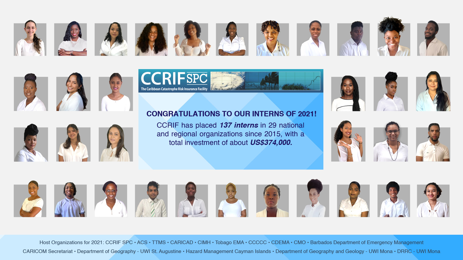 Each year, CCRIF invites organizations in the region to host interns and engage them to work on interesting projects and programmes. All interns are provided with stipends each month and those who travelled outside of their country pre-COVID were provided with airfare and accommodation for the period of their internship.