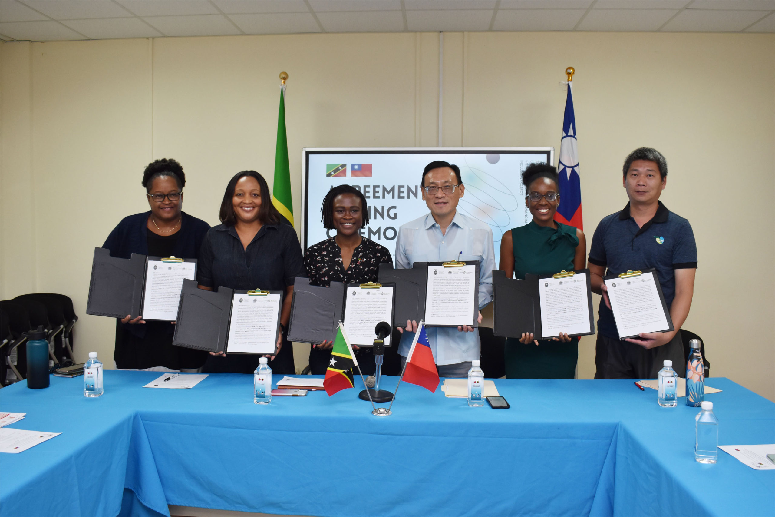 Also present at the signing ceremony were the Permanent Secretary in the Ministry of Social Development and Gender Affairs, Mrs Janelle Lewis-Tafari, Director of the Department of Gender Affairs on St. Kitts, Mr Virgil Jeffers, and Ms Grace Wang, the Secretary at the Embassy of the Republic of China (Taiwan).