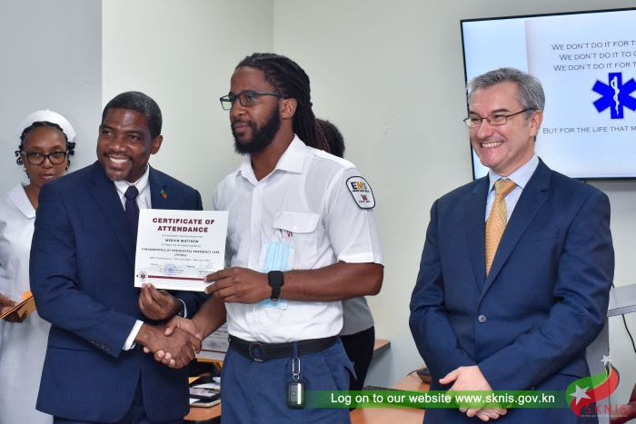 In extending his own commendations to the successful course participants, Prime Minister and Minister of Health, the Honourable Dr. Terrance Drew stated that the Emergency Medical Services is an integral part of the overall healthcare apparatus in St. Kitts and Nevis, as the services provided at this early stage of intervention often determine patients’ outcomes.
