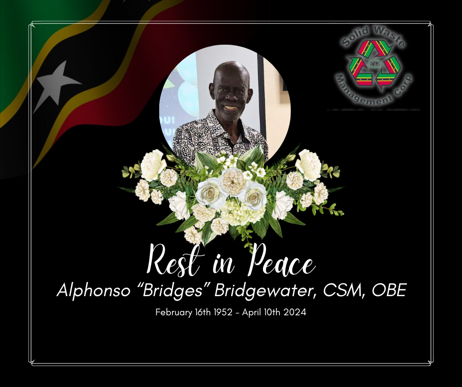 Bassetere, St. Kitts – It is with profound sadness that the Solid Waste Management Corporation (SWMC) announces the passing of Mr. Alphonso Bridgewater, our esteemed former and first ever, General Manager. Mr. Bridgewater passed away on Wednesday 10th April 2024, after a distinguished career and dedicated service to our organization.