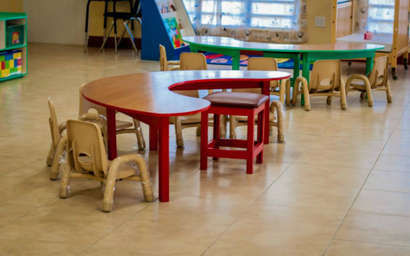 Some of the features of the center include a nursery and preschool area equipped with a laundry room and kitchen. Ramps have been installed for children with special needs. Bathrooms were designed for the children and each door is marked with an illuminated exit sign in the event of an emergency.