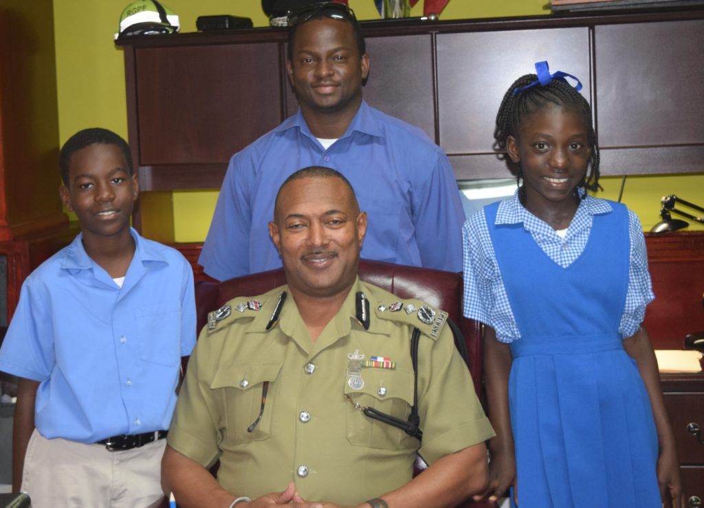 Curmarl a Grade Six (6) student, and Tei-naaki a Grade Five (5) student were chosen for the visit with the Commissioner as part of their school’s celebration for youth month.