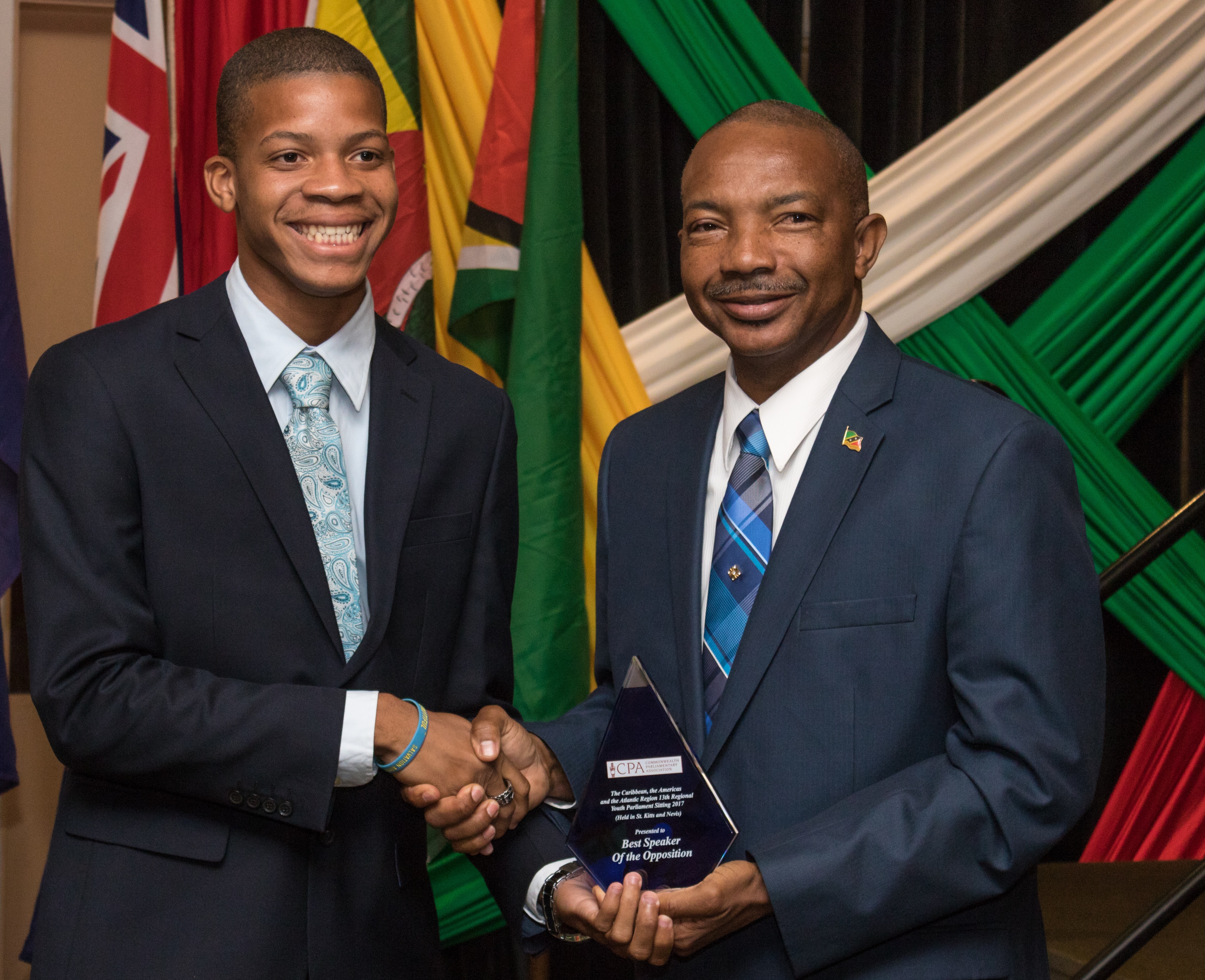 Mr. Azard Gumbs, President of the St. Kitts National Youth Parliament Association and Coordinator of this year’s CPA Regional Parliamentary Sitting moderated the debate by playing the role of Speaker.