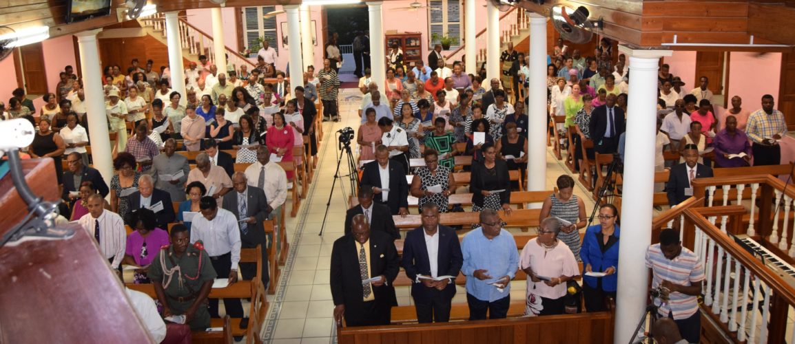 Basseterre, St. Kitts, September 13, 2017 (SKNIS): Nationals and residents from all walks of life gave thanks to God at a special church service on Tuesday, September 12, for what many described as “the sparing of St. Kitts and Nevis” from the full destructive potential of Hurricane Irma, which killed at least 31 people across the Caribbean and caused more than US $10 billion in damages, according to disaster risk experts.