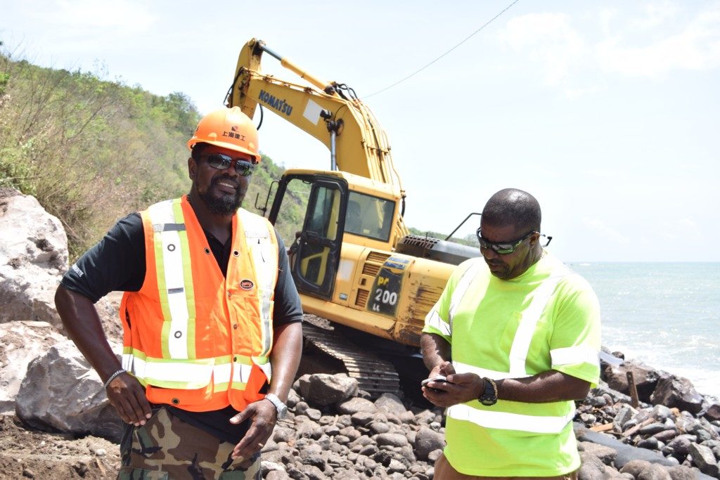 Kevin Williams, Civil Engineer at the Public Works Department (PWD), said work crews from his department have been steadfast in ensuring that the damage caused by the sea during Hurricane Maria is repaired in a timely manner, given the importance of the road to motorists traveling west into the capital, Basseterre.