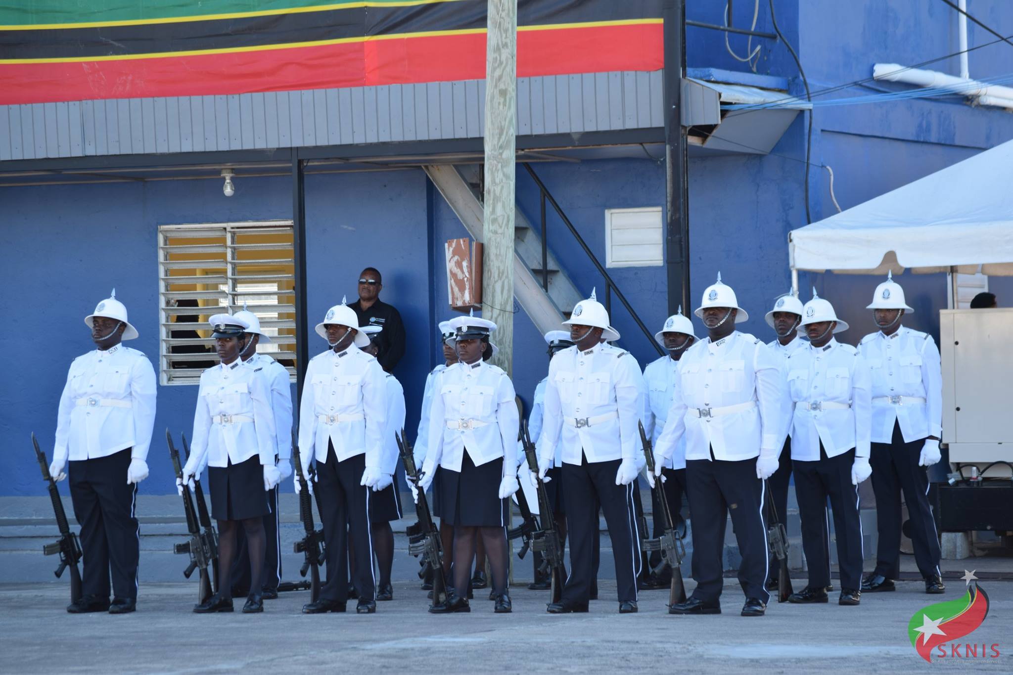 Senior Minister and Minister of Nevis Affairs, Labour, Social Security and Ecclesiastical Affairs, Vance Amory, delivered the featured address in lieu of the prime minister who was in the House of Assembly at the time. Minister Amory urged the new police officers to commit themselves to ensuring that St. Kitts and Nevis was a place of peace.