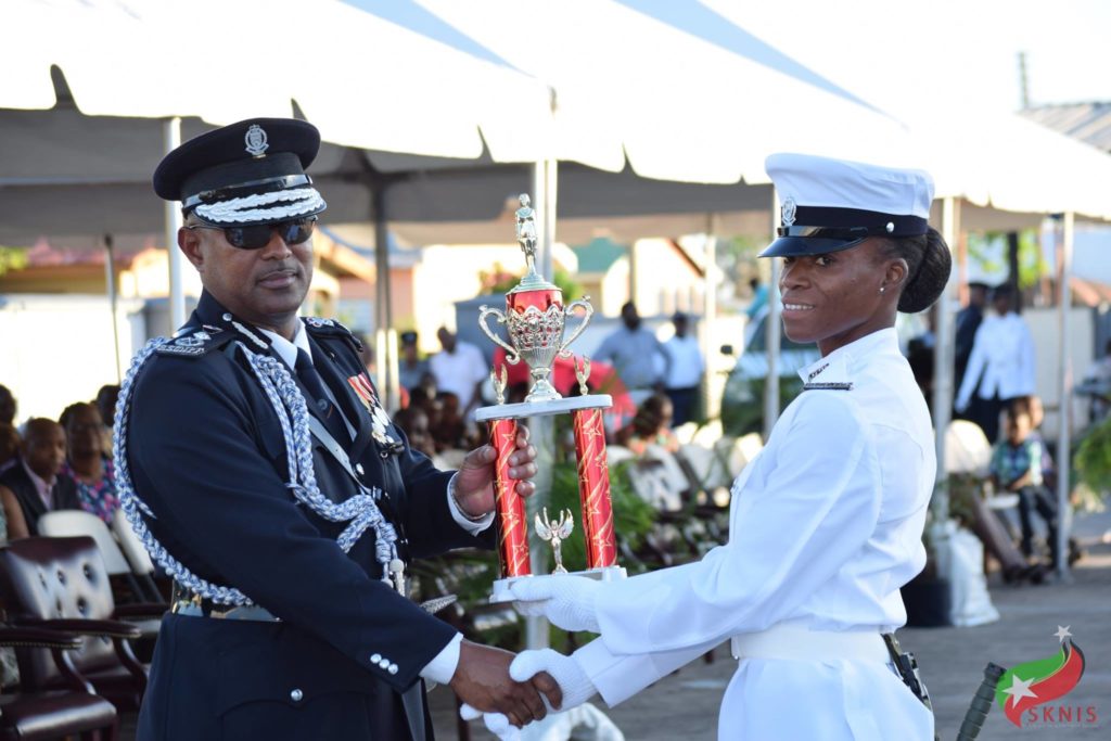 Several awards were distributed at the ceremony. The top award went to Woman Constable Shatresha Ephraim who received the Baton of Honour from the Commissioner of Police, along with the Prime Minister’s Plaque and a trophy from Prime Minister, Dr. the Honourable Timothy Harris, for being named the Most Outstanding Student. She also received awards for Best at Rifle Shooting, Best at Kit and Turn Out, Best at Physical Training and Best at Drills.