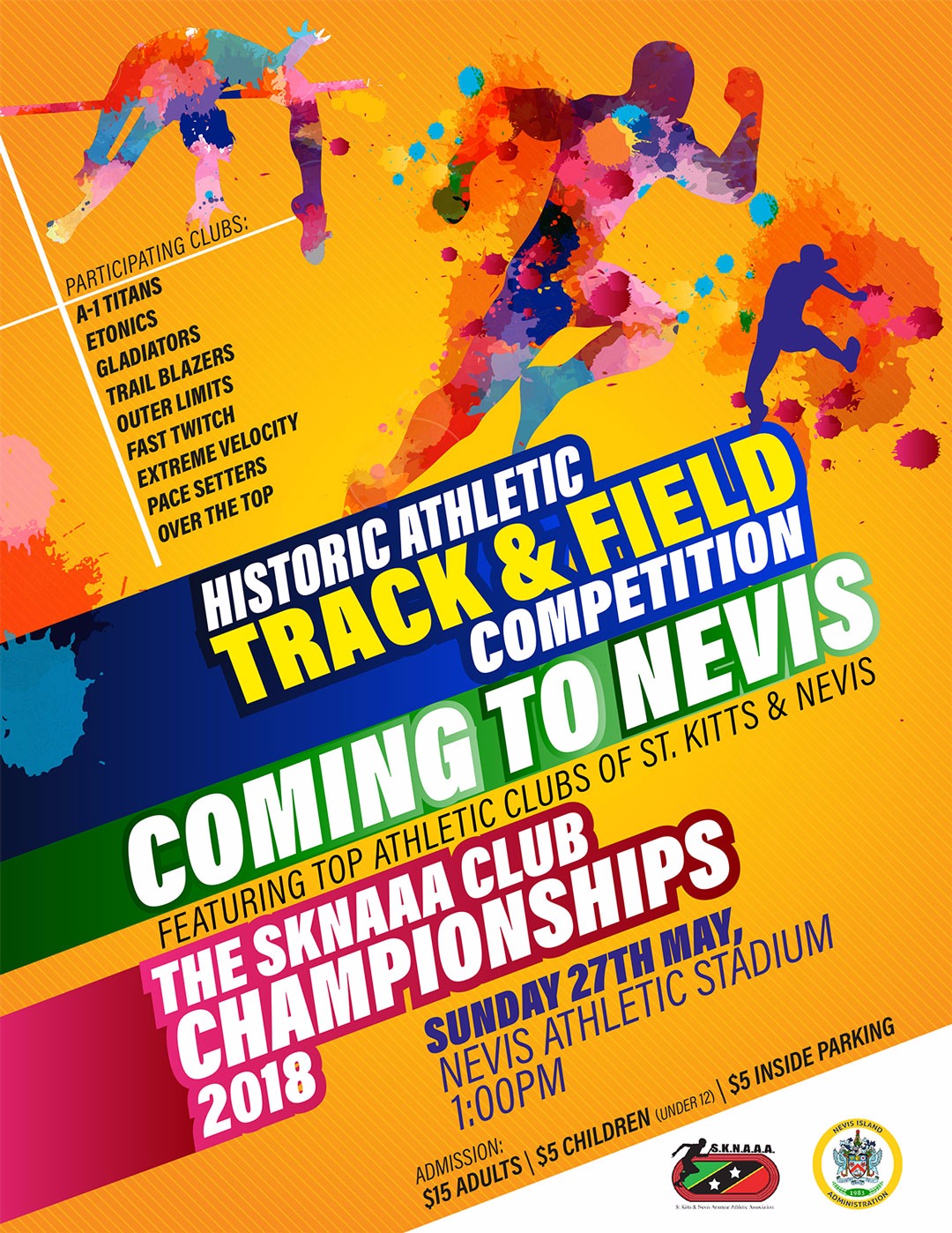 The 2018 Club Championships, slated for Sunday, May 27 at the recently opened Nevis Athletic Stadium, will be the first national track and field event to be staged on Nevis. The action races off at 1pm.