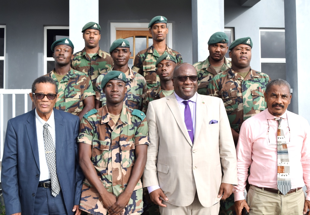 His final stop was at the Cotton Ground Police Station where he met with the soldiers of the St. Kitts-Nevis Defence Force (SKNDF) who are posted in Nevis. The SKNDF has had personnel stationed in Nevis for several years now. Prime Minister Dr. Harris thanked them for their dedicated service to the country and their commitment to the safety and security of the people of Nevis. He asked them about their work experience so far and encouraged them to communicate any concerns they might have.