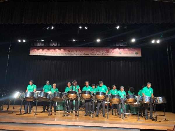 With them in the audience was the Honorable Vance W. Amory, Senior Minister and Minister of Nevis Affairs, Social Security and Ecclesiastical Affairs and Mrs. Amory, Her Excellency Jasmine Huggins, Ambassador of Saint Christopher and Nevis to the Republic of China (Taiwan), high level officials from the Ministry of Foreign Affairs of the Republic of China (Taiwan) and members of the diplomatic Corps and Representatives of Foreign Offices in Taiwan. In her remarks, Ambassador Huggins stated that the evening was special “as it brings together diverse cultures though a universal medium, music…The Pantastics, who traveled from Saint Kitts and Nevis for this special occasion, have captivated audiences throughout the region, winning accolades where ever they have played, and they are excited to display their skills and share their love of steelpan music with you”. Ambassador Huggins further welcomed the Jiaxin Elementary school choir noting that their “impressive performance in Europe after a short learning period earned them the gold medal and the Special Jury Prize in the 2018 Franz-Schubert International Choir Competition”.