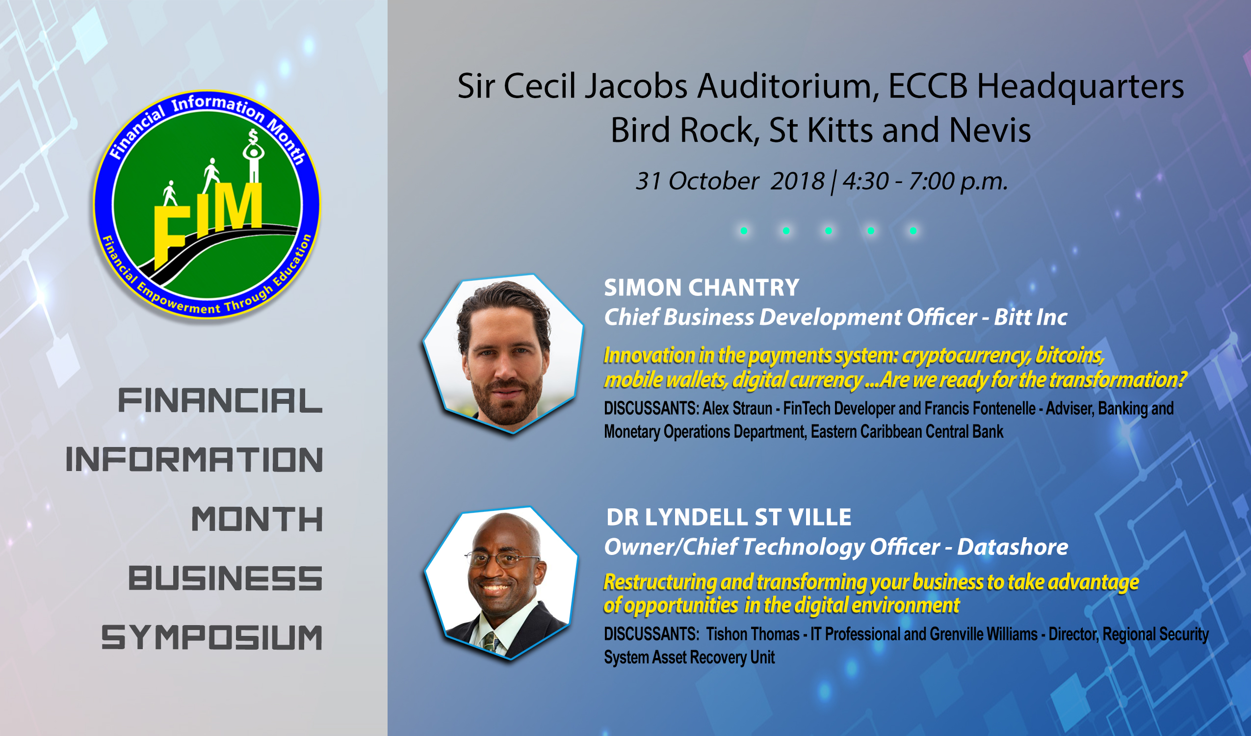The Eastern Caribbean Central Bank (ECCB) and Financial Information Month partners in the Federation are collaborating to host the symposium under the theme: Conducting and Protecting Your Business in a Digital Environment.