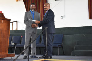 Present at the worship service included the Minister of Agriculture, Health, National Insurance, Human Settlements et al, the Hon Eugene Hamilton, Permanent Secretary in the Office of the Prime Minister Mr Osbert DeSuza who brought greetings, STEP Director Mr Wendell Wattley who read from the scriptures, STEP’s Quality Assurance Coordinator/Consultant Mr Emile Greene, STEP Office Manager Mrs Agatha Caines, office and field staff, and STEP participants.