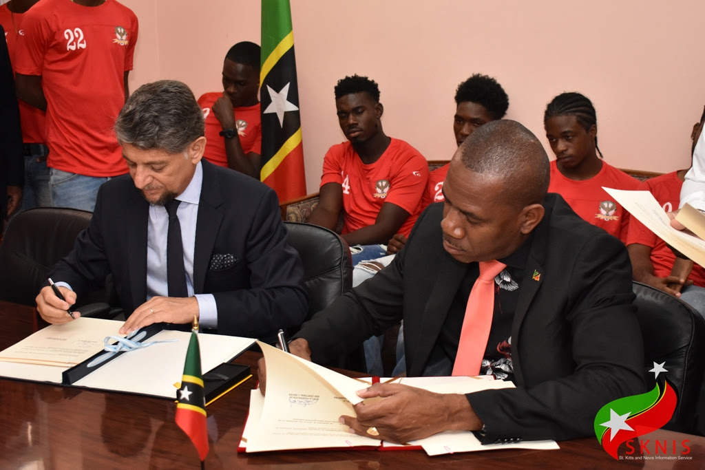 “This is the first agreement that I am going to sign in what I expect is going to be a very long lasting friendship. We have been working in St. Kitts and Nevis for a while in different issues but today, we are signing a cooperation agreement in the field of sports which I think is very important because it is for the benefit of our peoples…,” said His Excellency Pandiani.