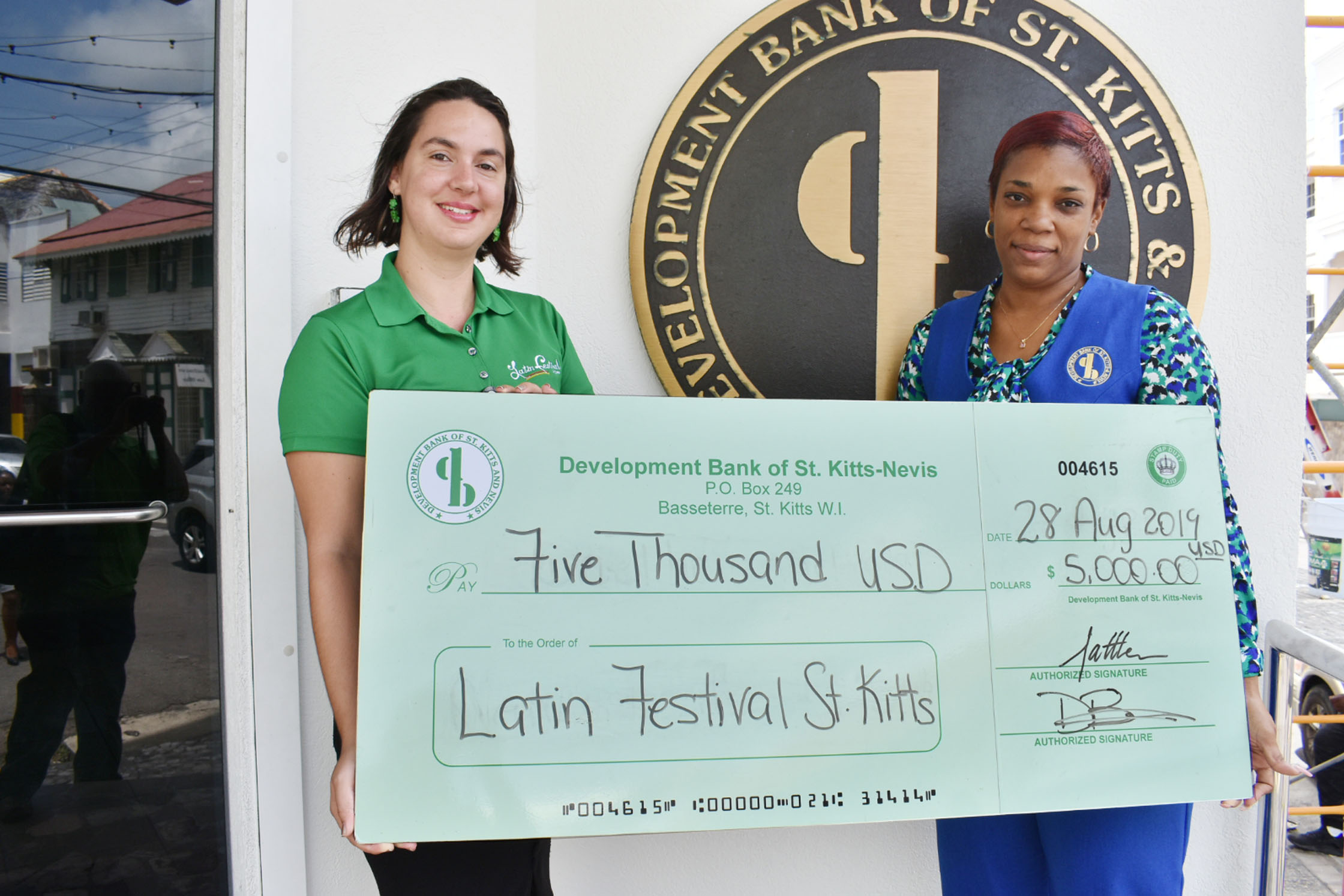 “Towards the end of August this year the Development Bank of St. Kitts and Nevis handed over our sponsorship cheque for this year’s events which start in earnest next week on Monday October 21, climaxing with the Latin Fiesta on Saturday October 26 at the Frigate Bay Lawns,” observed Ms Evelyn-Maynard. “Be entertained and also educated by attending at least one, if not all of the events organised by Latin Festival St. Kitts.”