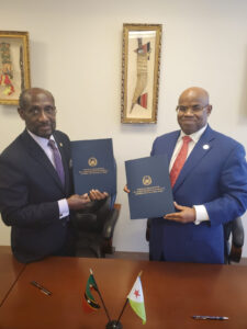 New York, USA (24th February 2020) – In an effort to expand its diplomatic footprint, Saint Kitts and Nevis’ Ambassador and Permanent Representative to the United Nations, His Excellency Sam Condor, met with his counterpart, His Excellency Mohamed Siad Doualen, Permanent Representative of the Republic of Djibouti to sign an agreement establishing diplomatic relations between the two countries.