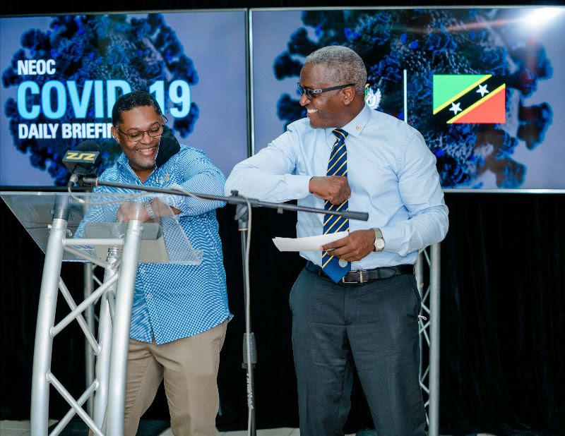 During the National Emergency Operations Center (NEOC) COVID-19 Daily Briefing for April 20, 2020, Trevor Blake Governor of Rotary District 7030, presented a cheque of $11,000 and one for $10,500 from the Rotary Club of Liamuiga and the Rotary Club of St. Kitts respectively. The cheques were presented to Medical Chief of Staff for the Joseph N. France Hospital, Dr. Cameron Wilkinson.