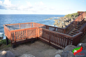 He noted that the decks allow patrons to safely experience, up-close, “wind-swept vegetation, rugged terrain, and charred volcanic ruins that litter the black sand beach below.”