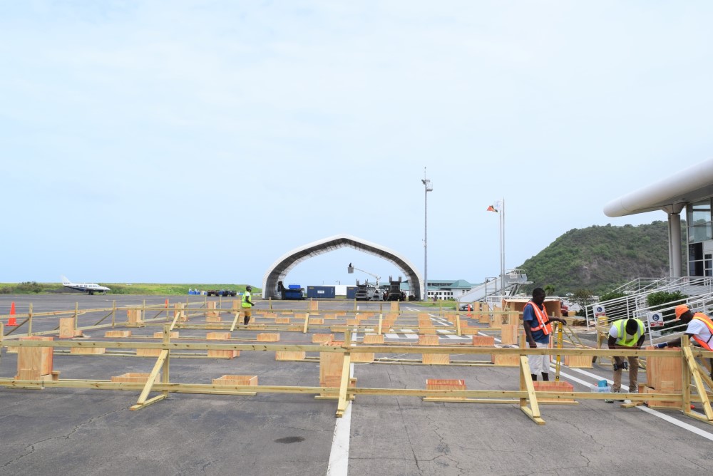 “The Chairman of SCASPA Mr. Damion Hobson has advised that works at our main airport the RLB International commenced on Monday, September 28, 2020. The first phase of the work addresses the Welcome Centre on the ramp in front of the arrivals area, converting the VIP Lounge into the medical screening area and constructing sneeze guards on the counters,” said the Prime Minister.