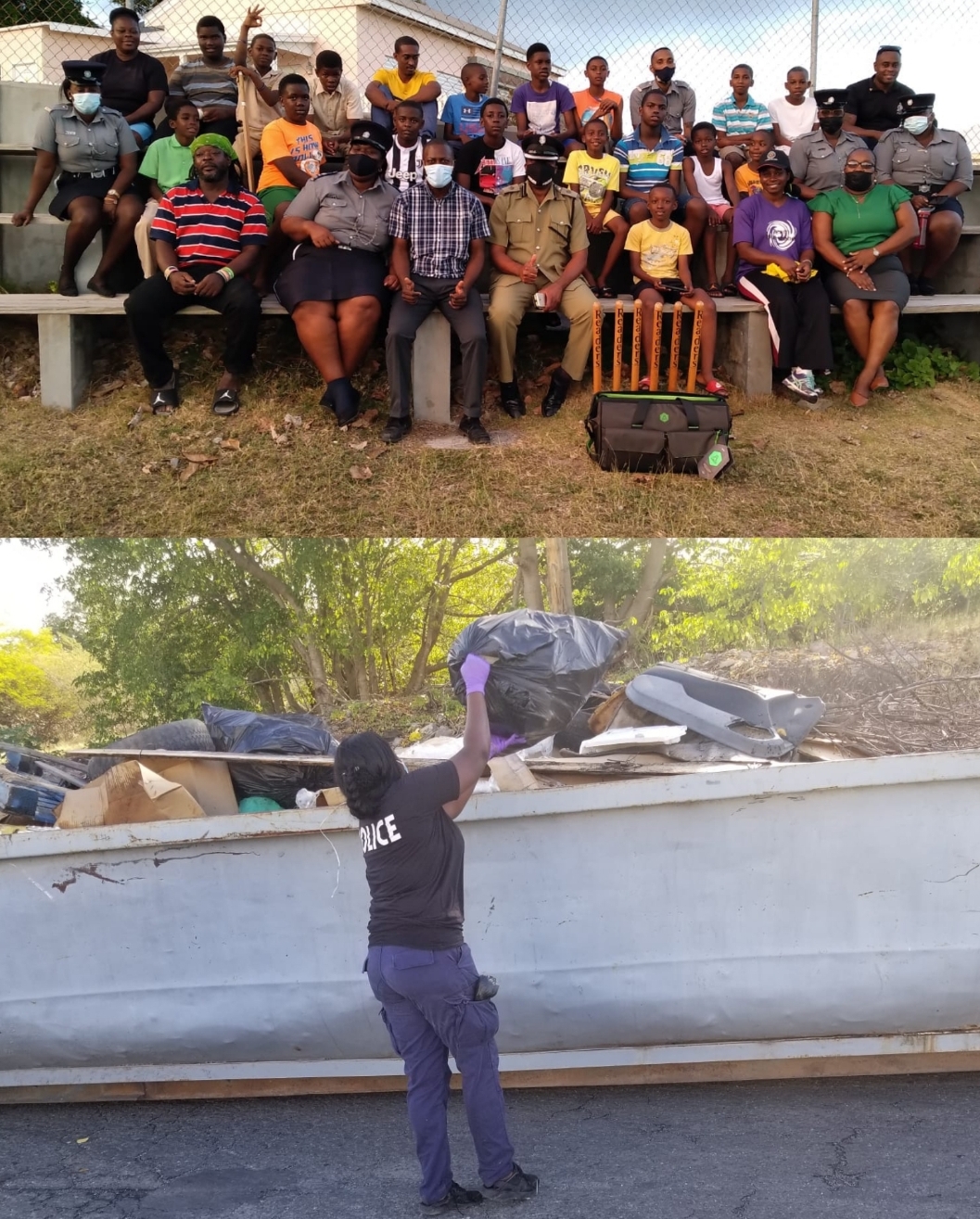 “Also,…we had another initiative where we had a cleanup of Long Point Road, where officers of the Division came together to plan the event and we cleaned up from the roundabout right there at Value Mart all the way down to Long Point Road…we had a number of civilians who came out and helped us, we had the Premier [of Nevis] himself there cleaning up as well. We had a number of passersby who decided this is something good that you are doing and so we want to be a part of it and they stayed and cleaned up…we had another gentleman who was passing with a dump truck, who stopped and collected all of our garbage. Then we had somebody else who saw, again, what we were doing was good and decided to donate some cases of water.”