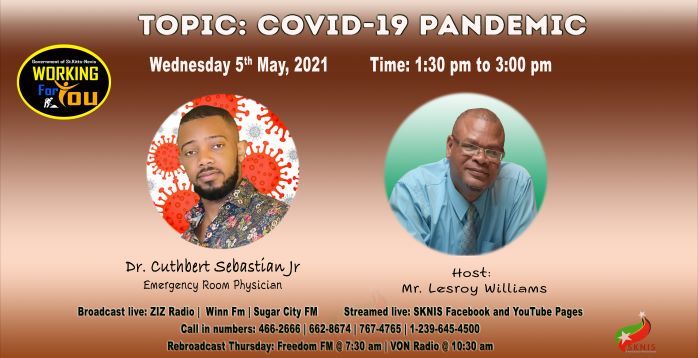 Basseterre, St. Kitts, May 4, 2021 (SKNIS): Dr. Cuthbert Sebastian Jr., Emergency Room Physician at the Joseph Nathaniel France (JNF) General Hospital, will be featured on the popular government radio and television programme “Working for You” on Wednesday, May 5, 2021.