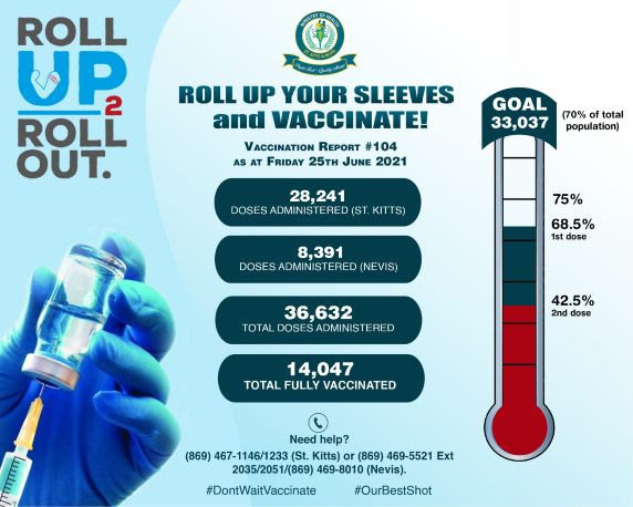 St. Kitts & Nevis COVID-19 Situation Report No. 456 as of Friday 25th June, 2021, states that the total number of confirmed cases now stands at 428 with 313 active cases, 112 recovered cases and three deaths. 413 of those cases were recorded in St. Kitts while 15 were registered in Nevis. To date, there have been 20, 172 negative results.