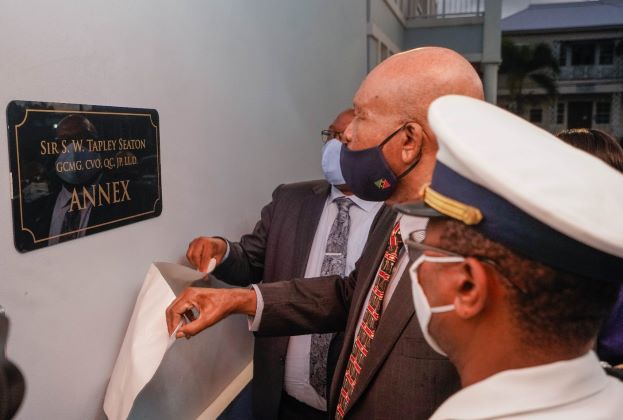 “I deem it a singular honour to approve and witness the naming of this Annex in honour of the venerable Sir S. W. Tapley Seaton, who has served his country and people with remarkable honour, humility and distinction. He has been a high source of inspiration to me and so many of us in St. Kitts and Nevis and around the region,” said Prime Minister Harris. “He needs no public pronouncement because the Governor-General, Sir S.W. Tapley Seaton has almost been there everywhere in terms of the judicial undertakings in our country and in the region. He had the distinction of being chosen way back then, a young man, as the Attorney-General of the Independent country of St. Kitts and Nevis, but importantly, he had served in a prior administration,” he said. “So, it shows then that the public confidence in his character, in his ability to rise to the standard of nation-building, was well good and intact.”