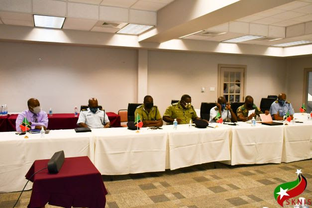 Basseterre, St. Kitts, May 13, 2022: Law and Order continue to occupy a very fundamental component of the lives of the citizenry of St. Kitts and Nevis. In keeping with the good governance agenda geared to foster peace around the entire Federation of St. Kitts and Nevis by significantly reducing crime, the Prime Minister Dr. Harris and the Cabinet Secretary Ms. Josephine Huggins sat with several Law Enforcement Officials including the Commissioner of Police Mr. Hilroy Brandy, Member of the High Command, Lieutenant Colonel Anthony Comrie-Defence Force Commander, and other Members of the High Command, to listen and to speak to a progress report which categorically showed a substantial decrease in major crimes in the Federation. It was the Leadership of the High Command who enthusiastically indicated a 10% reduction in major crimes from January to May 10, 2021, compared to January to May 2022. For such, therefore, it is highly appropriate to express a resounding gratitude to God for His extended mercies to our Federation, ‘To God be the Glory Great things He has done.’ The Prime Minister pronounced a high moment of praise and gratitude to the Law Enforcement Officials for ensuring that the laws of the land remain the bedrock for optimum serenity. Dr. Harris concluded the meeting by recommitting himself to addressing the resource constraints outlined by the High Command.