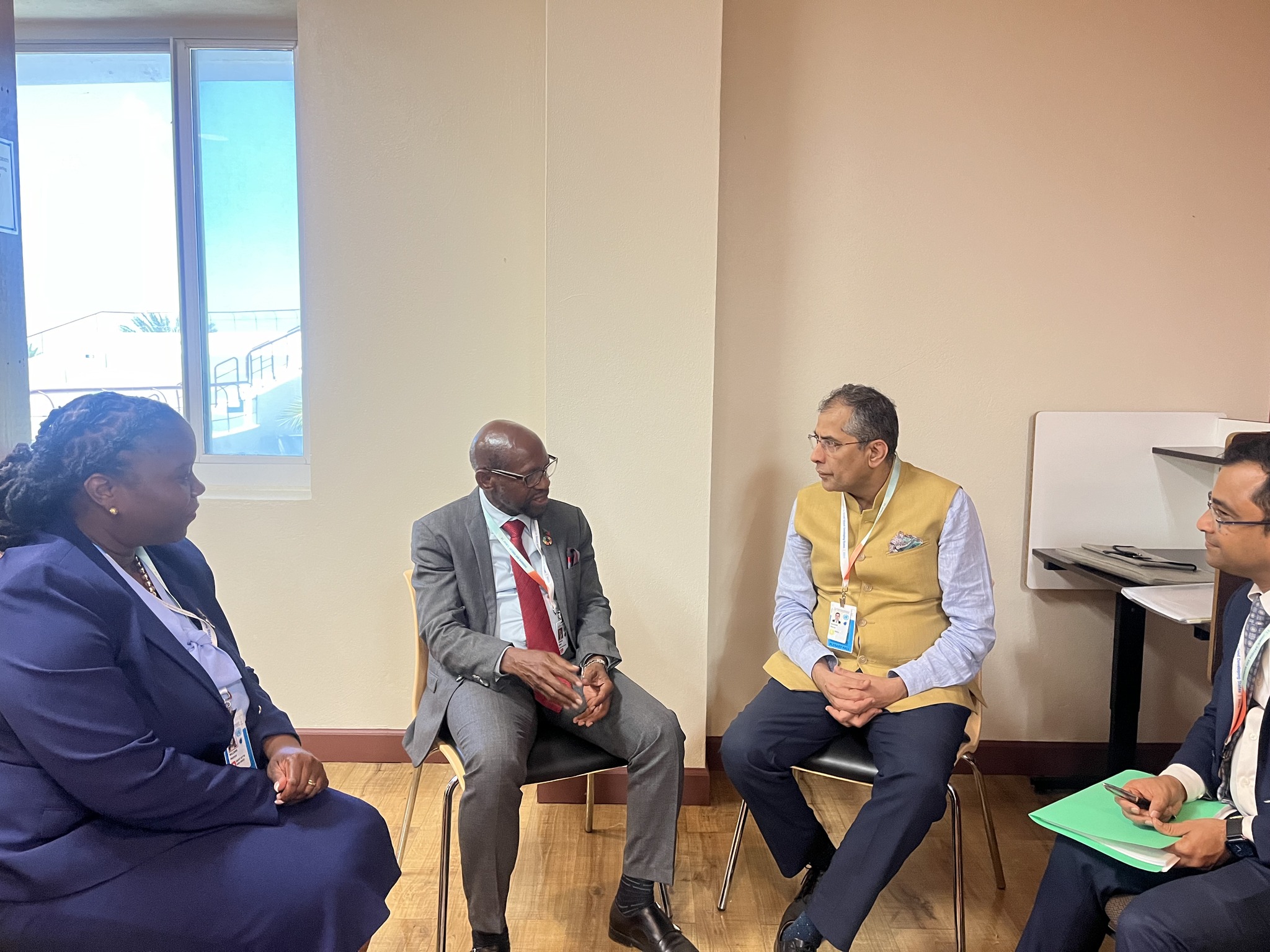 Later, Minister Douglas met with Indian delegation Mr. Pavan Kapoor, Vice Minister of Foreign Affairs, and His Excellency Dr. Amit Telang, High Commissioner of India and was accompanied by Her Excellency Dr. Mutryce Williams, Permanent Representative to the United Nations. Dr. Douglas discussed priorities including renewable energy, creative economy, and diplomatic expansion. Mr. Kapoor outlined opportunities to support these goals.