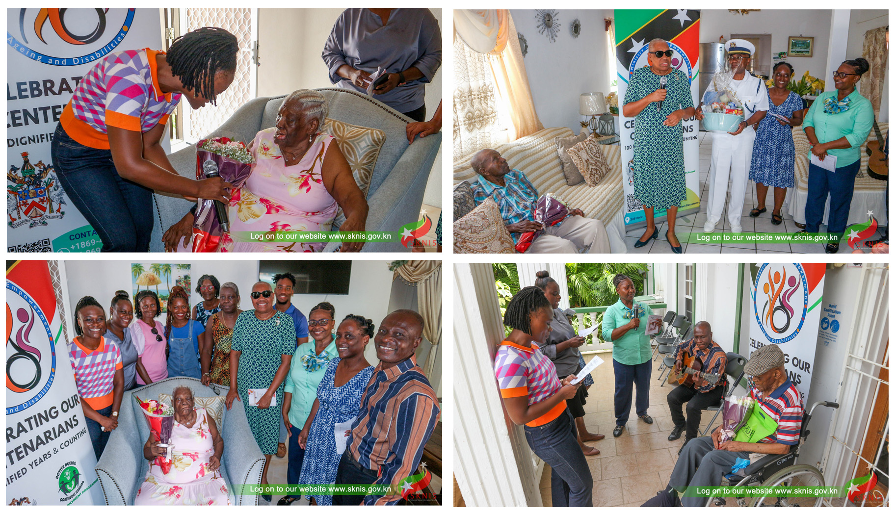 Dame Marcella wished each senior a Happy Centenarian’s Day and thanked them for their contributions in building St. Kitts and Nevis into a successful, thriving democracy. She also presented a basket of goods to each person, noting how special they were.