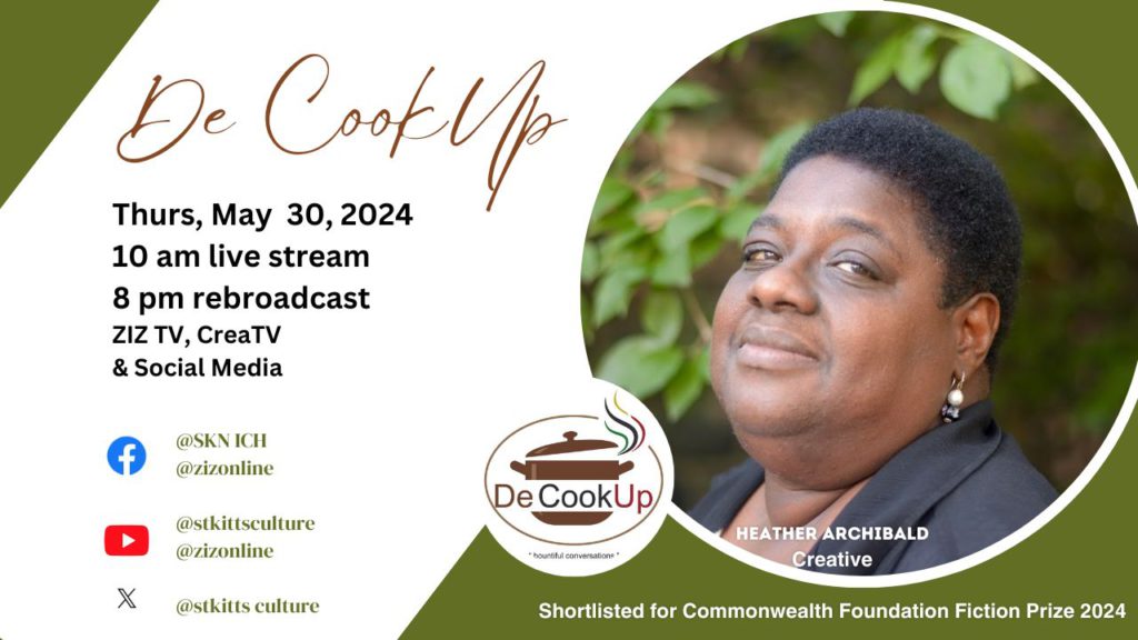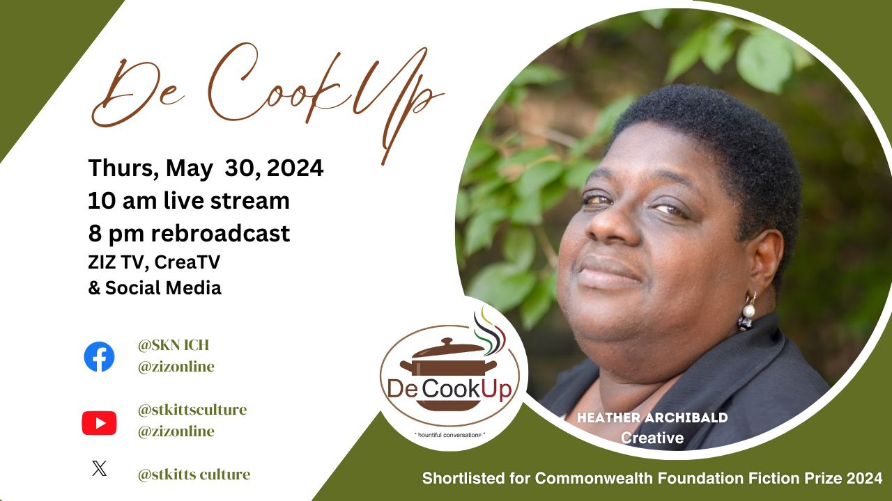 (Department of Creative Economy, St. Kitts, June 04, 2024):- The Department of Creative Economy (Cultural Heritage) produced its inaugural De CookUp “live” show featuring Kittitian author and poet Heather Archibald, on Thursday, May 30, 2024.