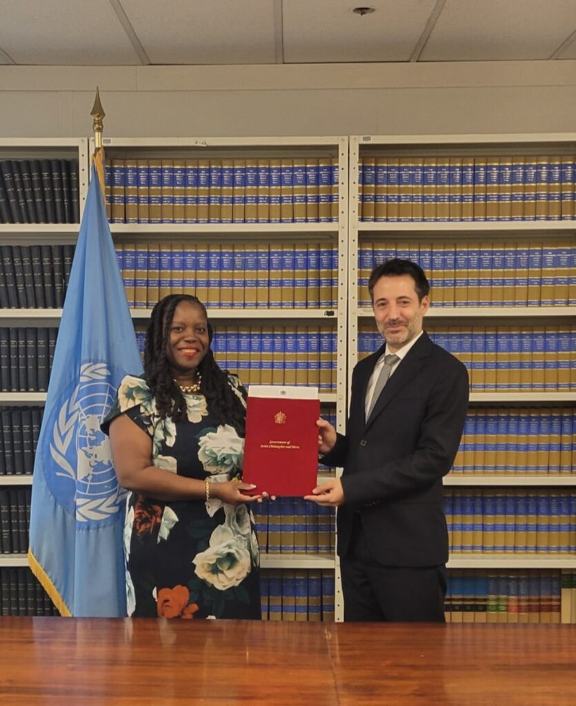 The instrument of accession was deposited at the United Nations’ Treaty Office on November 6, 2025, by Saint Kitts and Nevis’ Ambassador and Permanent Representative to the United Nations H. E. Dr. Mutryce Williams. It will enter into force three months from the date of deposit, on February 6, 2026.